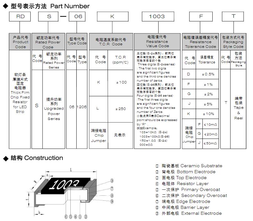 風華軟燈條厚膜片式固定電阻器型號命名規則: