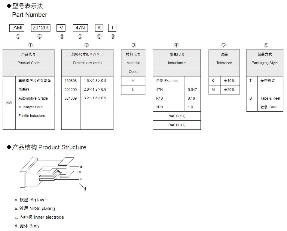 風(fēng)華高科車規(guī)疊層片式鐵氧體電感器命名規(guī)則: