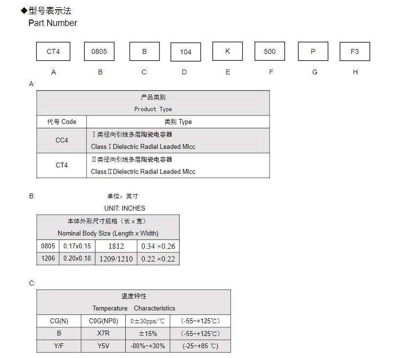 風華高科徑向引線多層陶瓷電容型號命名規則: