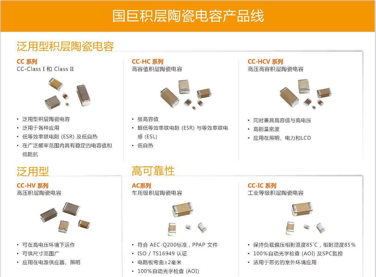 國巨貼片電容:通用型陶瓷電容,車用電容,高頻電容,軟端電極電容,微型化電容,排容,低感值電容