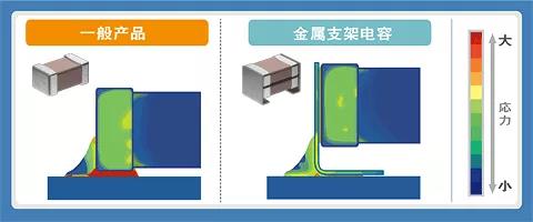 圖6:基板彎曲模擬(一般產(chǎn)品與金屬支架電容的比較)