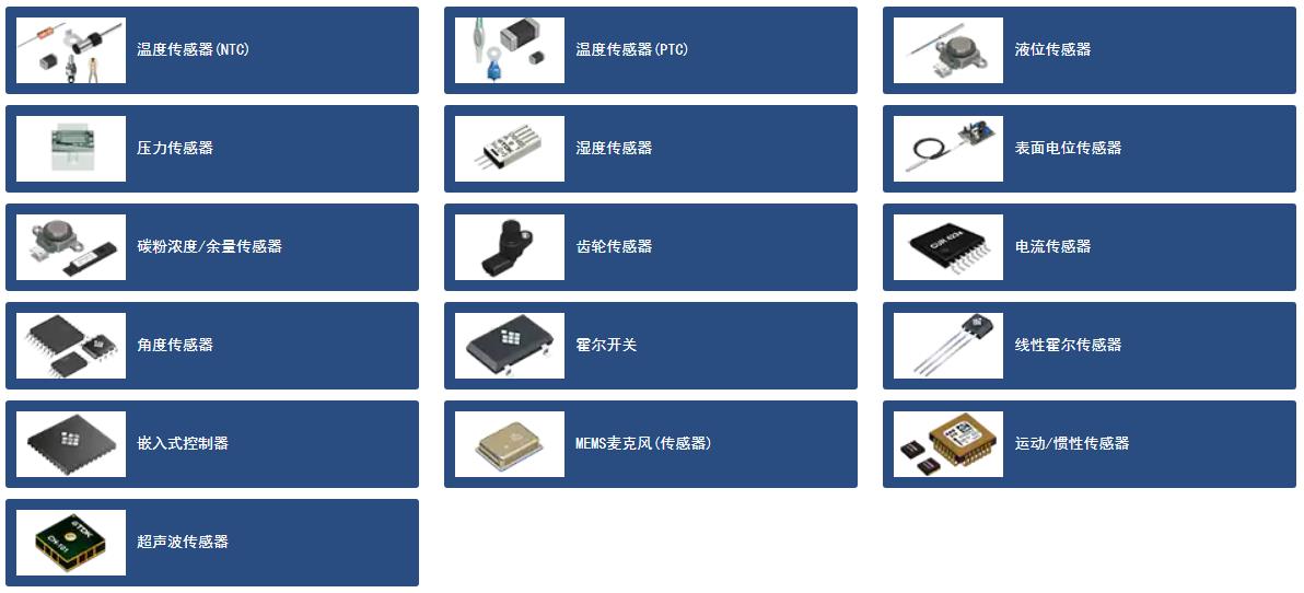 TDK公司的完整系列傳感器以TDK、EPCOS、InvenSense、Micronas和Tronics等產(chǎn)品品牌銷售,包括溫度傳感器、壓力傳感器、角度傳感器、電流傳感器。 精確的電流傳感器是電動(dòng)汽車的智能電源和智能電網(wǎng)不可缺少的。例如,溫度傳感器和傳感器系統(tǒng)被用來調(diào)節(jié)冰箱和空調(diào)系統(tǒng)的溫度,或者測(cè)量電動(dòng)汽車工作液的溫度。壓力傳感器廣泛應(yīng)用于汽車、工業(yè)電子、醫(yī)療工程和環(huán)境技術(shù)等用途。基于霍爾傳感器或TMR技術(shù)的磁場(chǎng)傳感器幾乎可以在任何需要測(cè)量位置、直線或旋轉(zhuǎn)運(yùn)動(dòng)、甚至電流的機(jī)器上找到。 基于運(yùn)動(dòng)的設(shè)備在三維空間內(nèi)檢測(cè)和跟蹤物體的運(yùn)動(dòng),從而使許多消費(fèi)電子設(shè)備(包括移動(dòng)電子設(shè)備、可穿戴電子設(shè)備、智能家居電子設(shè)備、汽車和工業(yè)電子設(shè)備)具有關(guān)鍵功能。對(duì)于運(yùn)動(dòng)傳感的高性能要求,TDK提供MEMS產(chǎn)品,如用于導(dǎo)航、運(yùn)動(dòng)跟蹤和運(yùn)動(dòng)控制以及光學(xué)穩(wěn)定的加速度計(jì)和陀螺儀。