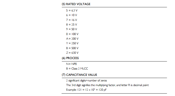 公差:B=±0.1 pF;C=±0.25pF;D=±0.5pF;F=±1%;G=±2%;J=±5%;K=±10%;M=±20%