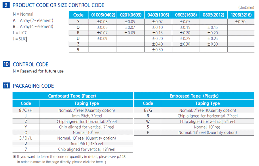 產品封裝:01005/0201/0402/0603/0805/1206/1210/1808/1812/2220