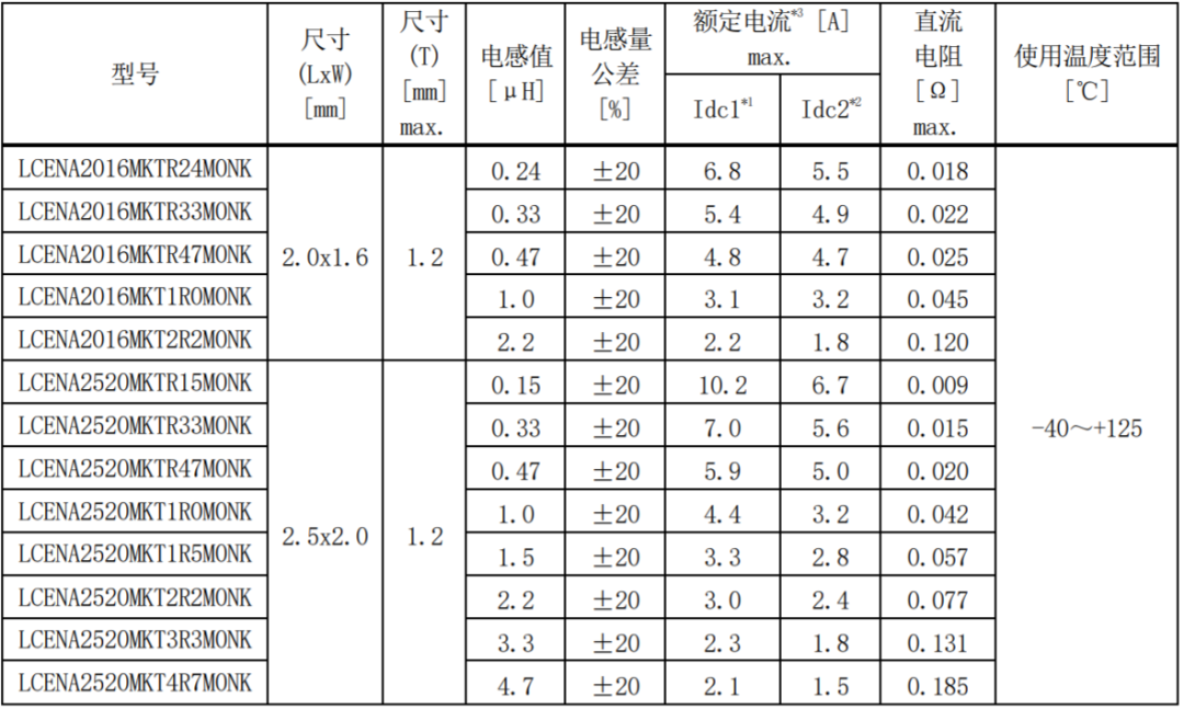 *1 額定電流(Idc1)是負(fù)載直流電流時(shí)的電感變化率在 30%以內(nèi)的電流值(at 20℃)