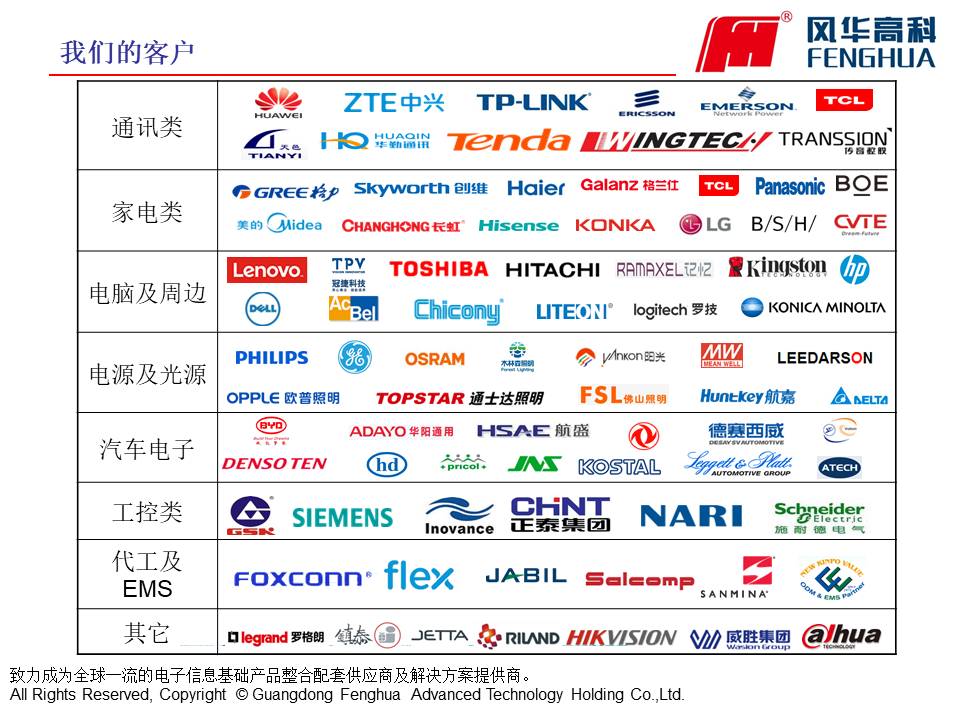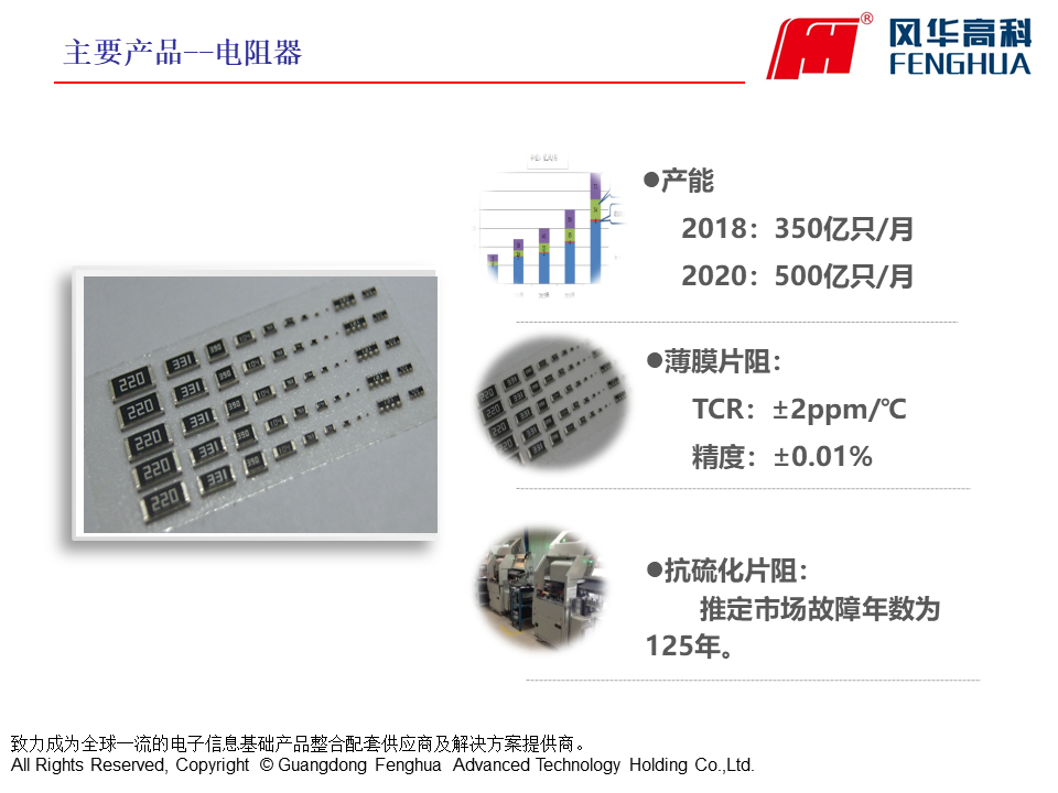 風(fēng)華高科具有完整與成熟的產(chǎn)品鏈,具備為通訊類(lèi)、消費(fèi)類(lèi)、計(jì)算機(jī)類(lèi)、汽車(chē)電子類(lèi)、照明電器類(lèi)等電子整機(jī)整合配套供貨的大規(guī)模生產(chǎn)能力。