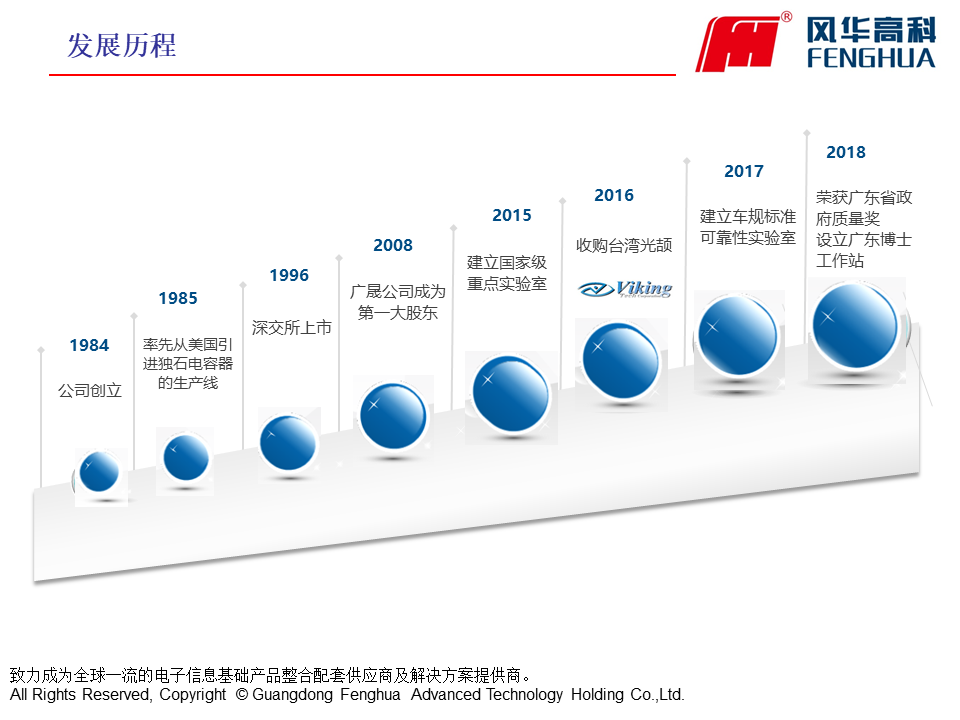 廣東風(fēng)華高新科技股份有限公司(證券簡(jiǎn)稱(chēng)風(fēng)華高科,證券代碼000636)成立于1984年,是一家專(zhuān)業(yè)從事高端新型元器件、電子材料、電子專(zhuān)用設(shè)備等電子信息基礎(chǔ)產(chǎn)品的高新技術(shù)企業(yè),1996年在深圳證券交易所掛牌上市。風(fēng)華高科自進(jìn)入電子元器件行業(yè)以來(lái),實(shí)現(xiàn)了跨越式的發(fā)展,現(xiàn)已成為國(guó)內(nèi)最大的新型元器件及電子信息基礎(chǔ)產(chǎn)品科研、生產(chǎn)和出口基地,擁有自主知識(shí)產(chǎn)權(quán)及核心產(chǎn)品關(guān)鍵技術(shù)的國(guó)際知名新型電子元器件行業(yè)大公司。
