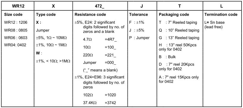 華新科貼片電阻命名規則對照表