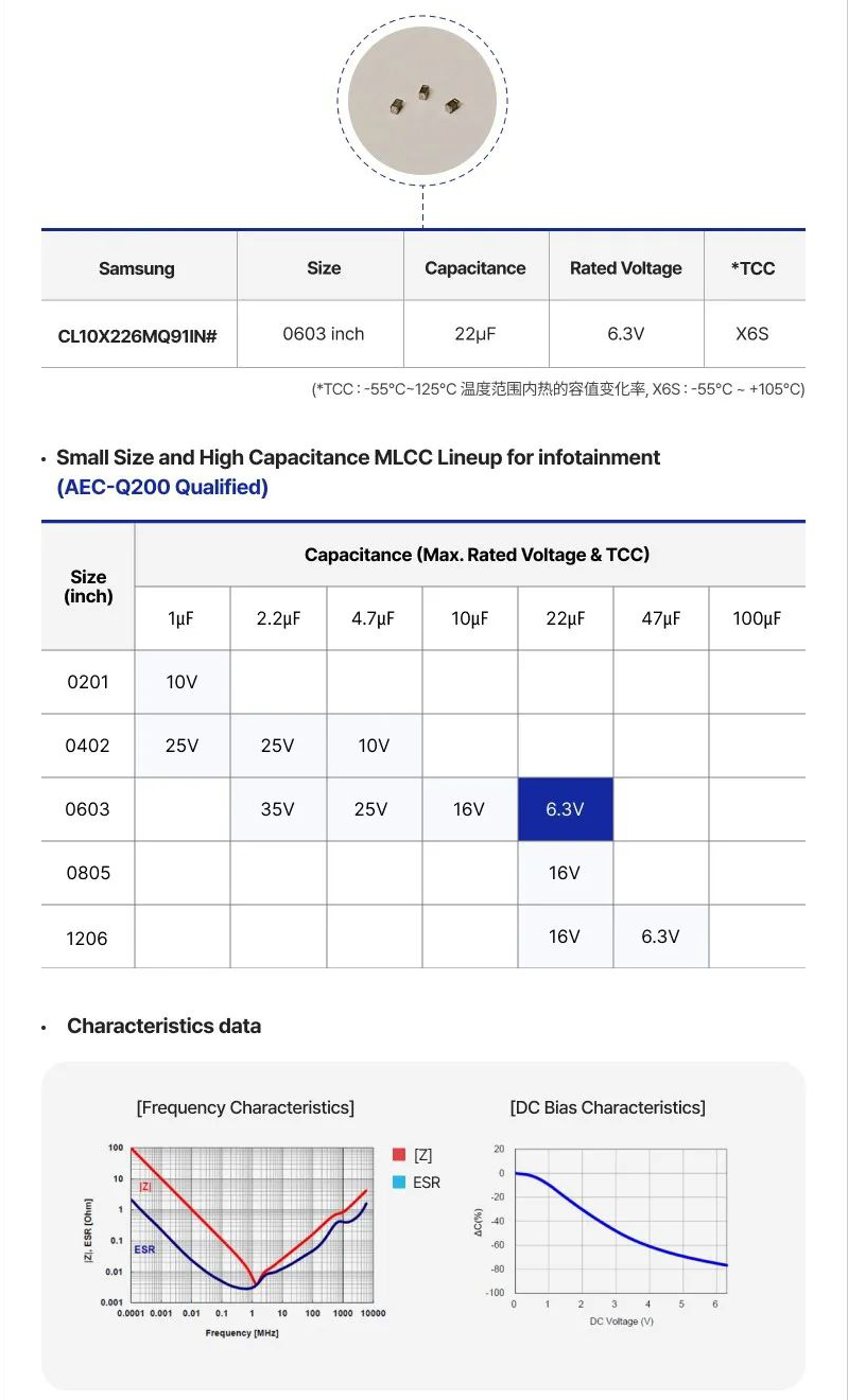 三星電機新品車載電容MLCC 0603 22uF